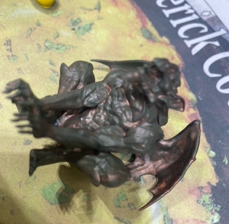 The gargoyle goes on a base set for a Batman figure in the works. It has a base of copper with a thin layer of US dark green to build up to what will be the weathered effect you see copper has in weather over many years.