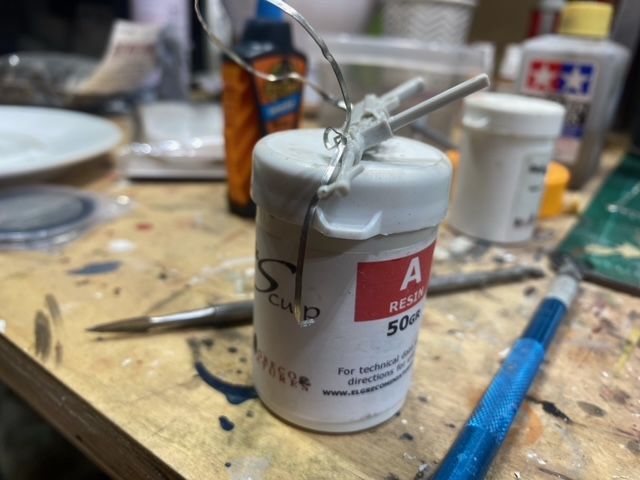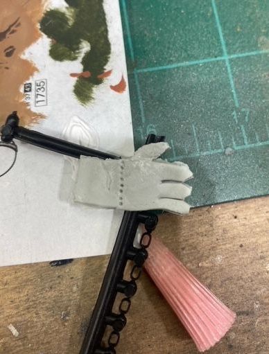 To add some more to the figure, I added a riding glove to the right hand and made the left hand glove. The soldier’s helmet will be off and upside down on top of the bike’s gas tank while he stops on the road to take a break.