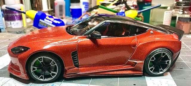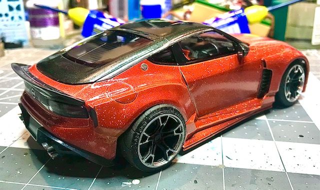 The slump is over! Finally got this one finished after struggling with paint issues and a motivational crisis. This is a 23 Nissan Z which has been augmented with a full wide-body kit and lowered suspension with wheels/tires. All add ons were sourced from Texas 3D Customs whom I have raved about in the past (they are fantastic I cannot recommend them highly enough).