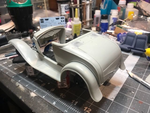 Next up is paint. The plan is a metallic Washington Blue with gloss black on the fenders. The interior will be saddle brown. I’m deciding on the wheel color currently, but am leaning towards a light yellow color called “straw” with matching pin striping of the body.