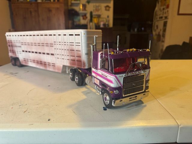 Builds 40 & 41 in the books. Built Pig Pen from the movie Convoy. It will go nicely with my Rubber Duck from the same movie. The trailer is just the AMT livestock trailer, with pigs. It went together very easily and was a fun build. The Mack Cruise Liner was a pretty simple build. Not too many headaches. Painted like the movie truck. Decals aren’t the best, but it’s what I had.