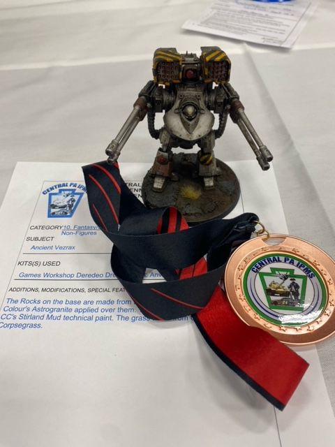 The club, as usual, did very well Everyone who submitted a model(s) won something. Winning gold was (of course) Randy and Scott. Check this out – so did Ben and Donovan! Stud muffins all, Jeff, Tom S. Ross, John, and I won silvers and bronzes. A sister club put one of their tokens next to a figure of mine – a real nice gesture from a fellow club. Accordingly, Chad has been tasked to develop Raven tokens we can put on tables to let that modeler know our club appreciated their work!