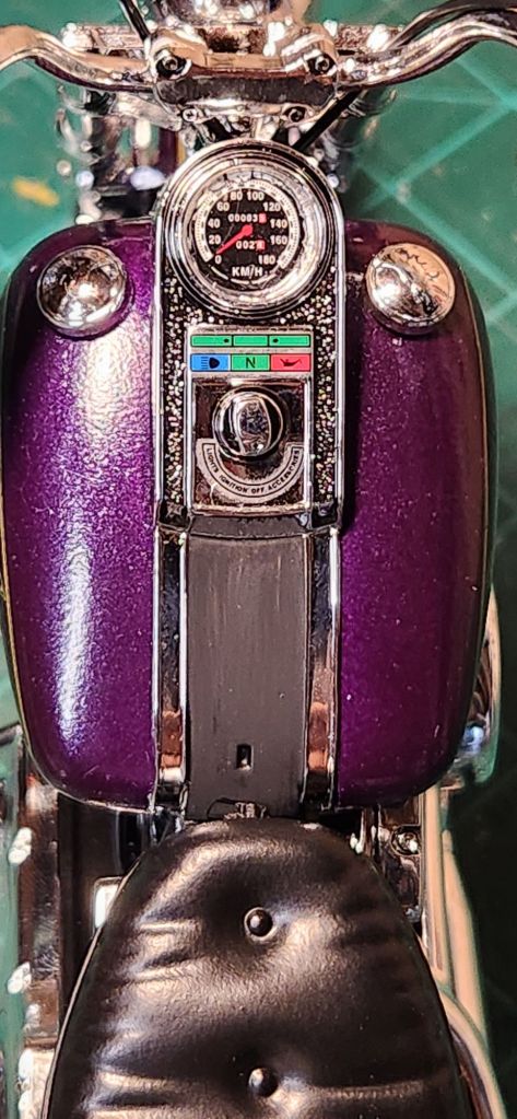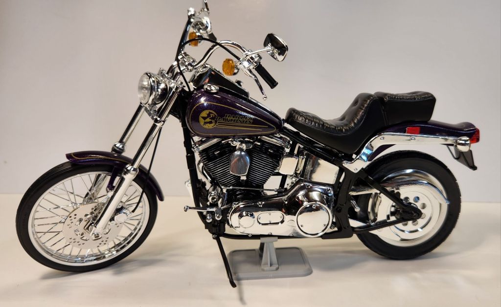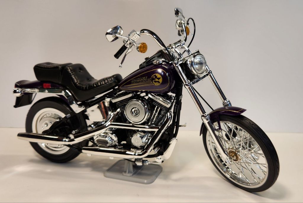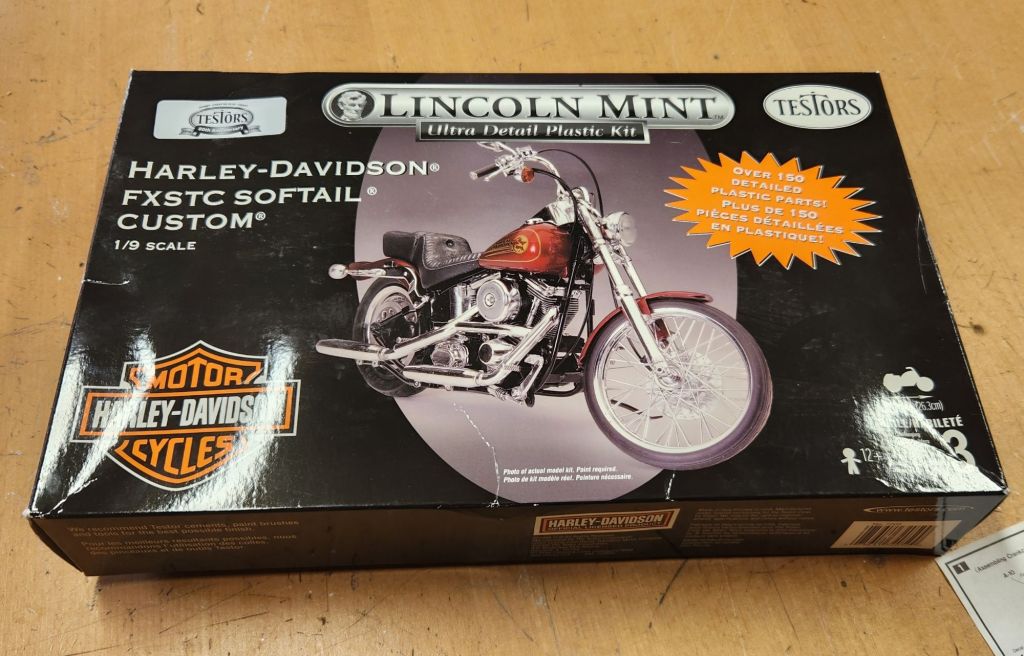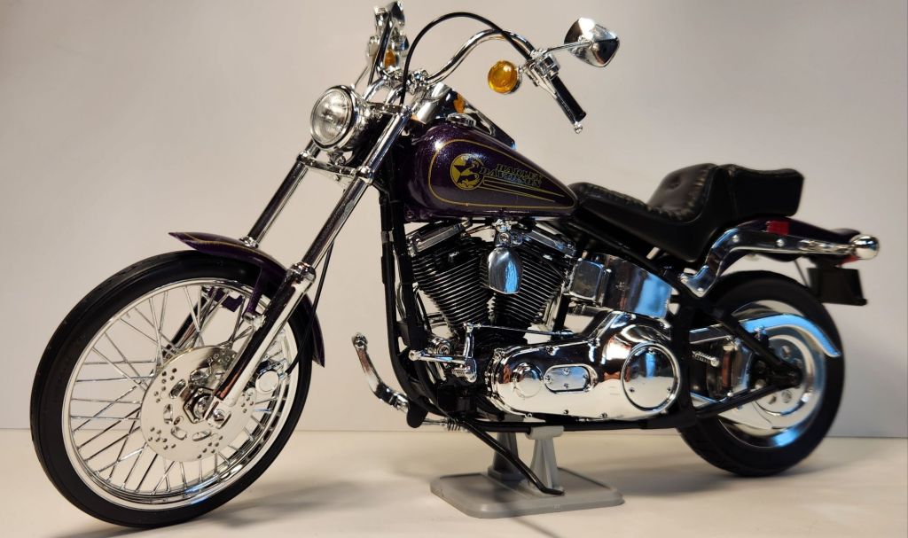 Latest build off the bench! Testors Lincoln Mint ultra detail 1/9th plastic kit. Harley Davidson FXSTC Softail Custom.