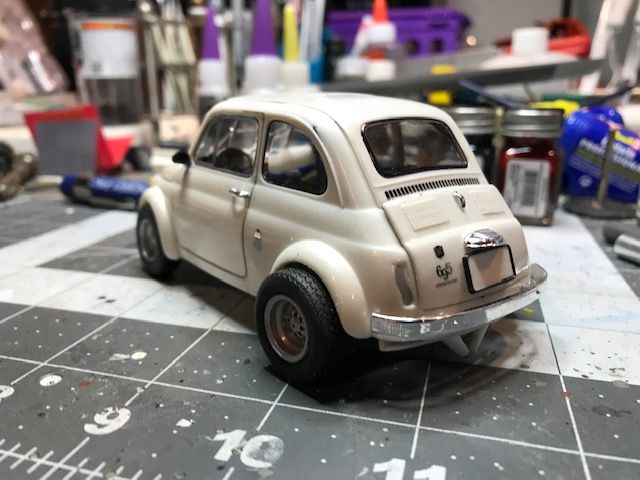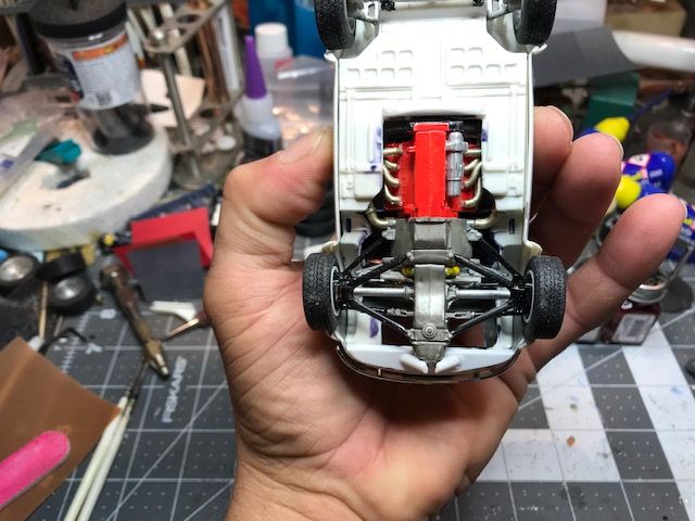Hey buddy, your engine is upside down! My latest effort is a vintage Monogram Porsche 904 Carrera GTS racer which I have augmented with the 3.2l flat six engine from a later 911. The engine and transaxle actually fit with only minimal modification to the chassis pan. The rear suspension also fit around the vastly larger engine without a lot of drama. The brake backing plates and hubs needed substantial work to accept the 15” Fuchs alloy wheels intended for the 911. The 911 also uses a staggered wheel sizing whereas the 904 used four laughably small 13” wheels.