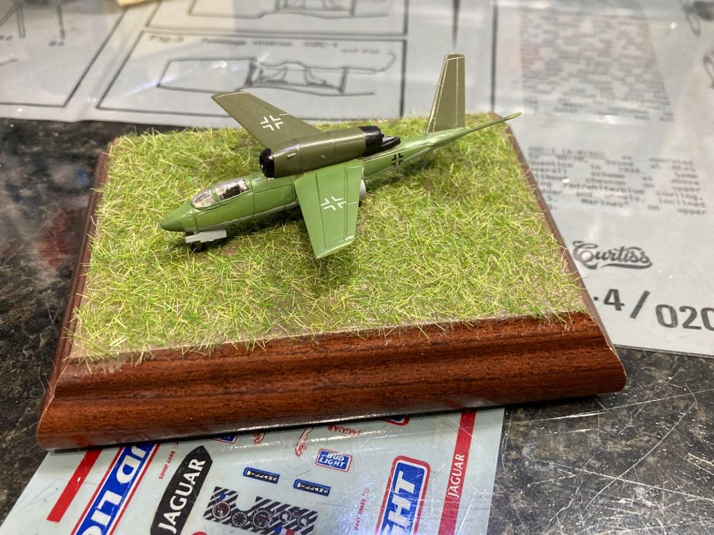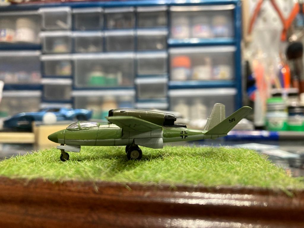 It was while taking this picture of the engine and rear suspension glued into chassis that I realized I was supposed to PAINT the chassis before assembly! Yikes! One epic masking job later, the car is now Graphite Grey. This old Monogram kit is best described as “challenging” so I will see what adventures await as I begin final assembly. More photos to come